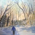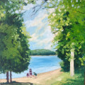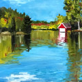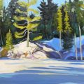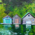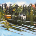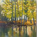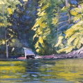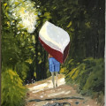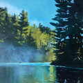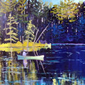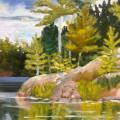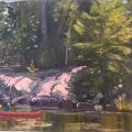 Terri Howell is an oil painter who has lived in the Muskoka farming community of Raymond for 41 years She paints to remember “the way we were” as major development creeps northward threatening the bucolic Muskoka vistas. She paints both en plein air and in studio. People, old cottages, sinking boat houses and peaceful paddlers often creep into her paintings.