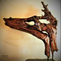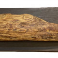 The beauty of the wood is often not apparent in the pieces as they exist in nature, covered as they are in sand, silt and algae. It is with cleaning and meticulous sanding that the hidden beauty in the grain, shape and texture is uncovered. Finishing with a natural oil brings out the drama in the grain and mounting on a base of Muskoka granite or quartz further enhances the impact.