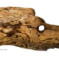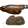 The beauty of the wood is often not apparent in the pieces as they exist in nature, covered as they are in sand, silt and algae. It is with cleaning and meticulous sanding that the hidden beauty in the grain, shape and texture is uncovered. Finishing with a natural oil brings out the drama in the grain and mounting on a base of Muskoka granite or quartz further enhances the impact.