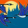Mark grew up on the shores of Golden Lake east of Algonquin Park, and as a child his school workbooks contained as many sketches as notes. He describes his painting style as a distillation of his graphic design background, the folk art of his Kashub Polish heritage, and the Woodland Art movement. Thematically, his stylized paintings depict the wildlife and wilderness of the Ottawa Valley, Algonquin Park and Muskoka.